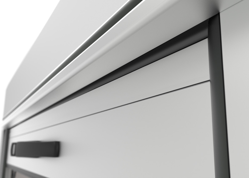 Bij montage van de zijgeleiding achter het kader heeft u niet de keus om de zijgeleiding met lip toe te passen. Wel heeft u de keuze om de zijgeleiding verder naar binnen te zetten, zodat de complete zijgeleiding met afdichtingsrubber achter het kader wordt geplaatst. U bepaald hoe ver de zijgeleiding achter het kader komt te staan door de breedte over zijgeleiding aan te passen. De extra totaal breedte van alleen de zijgeleiding is 54 mm. De extra totaal breedte van de zijgeleiding incl. afdichtingsrubber is 86 mm.